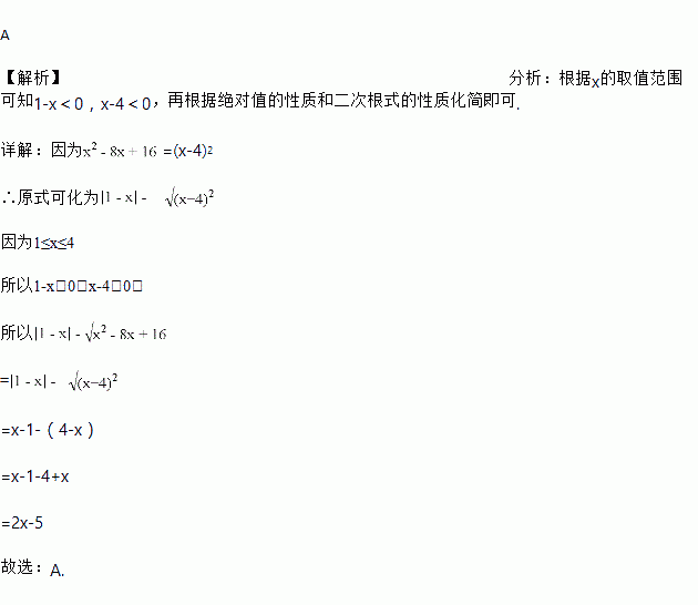 若1≤x≤4,则化简的结果是【 】