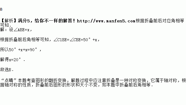 如图:将一个矩形纸片ABCD,沿着BE折叠,使C、D点分别落在点C1,D1处.若∠C1BA=50°,则∠ABE的度数为( )