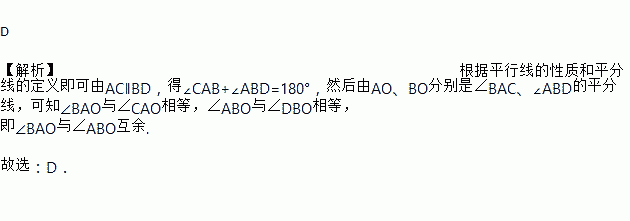 如图,已知AC∥BD,AO,BO分别是, 的平分线,那么下列结论错误的是( )