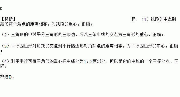 (1)线段的中点是线段的重心