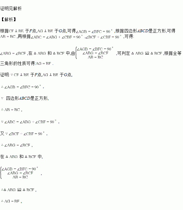 如图,正方形ABCD中,E是AD上任意一点,于F点,于G点.
