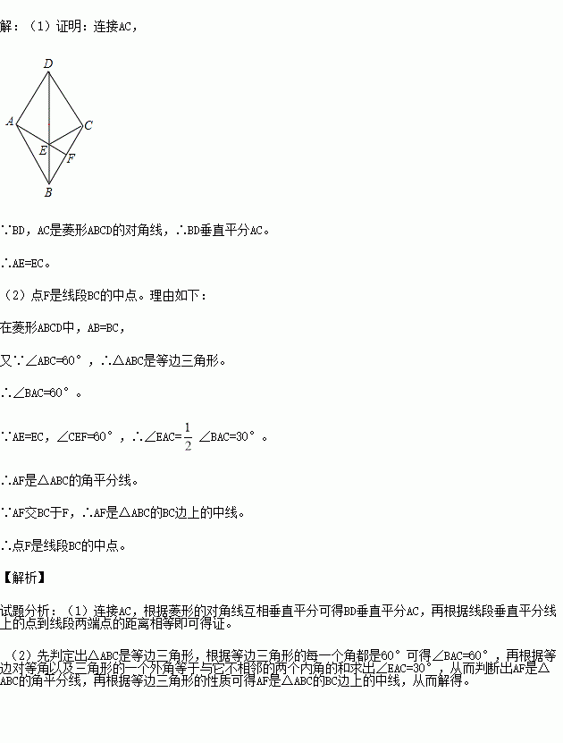已知:如图,在菱形ABCD中,F是BC上任意一点,连接AF交对角线BD于点E,连接EC.