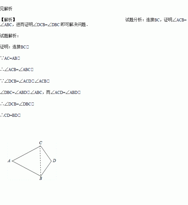 已知:如图,AC=AB,∠ACD=∠ABD,求证:CD=BD.