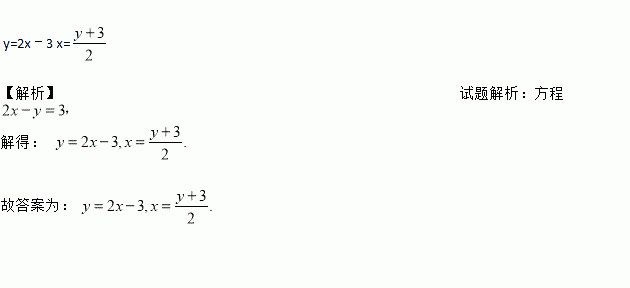 若方程2x﹣y=3写成用含x的式子表示y的形式:________;写成用含y的式子表示x的形式:________.