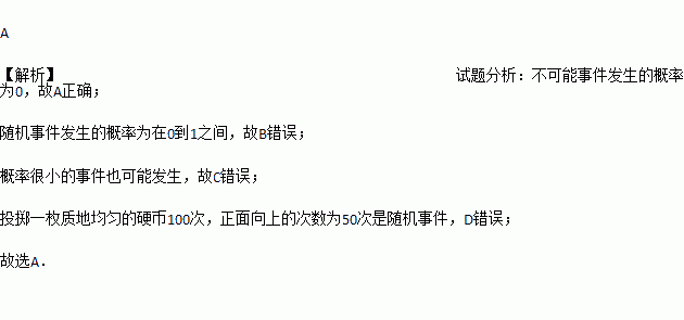 A. 不可能事件发生的概率为0