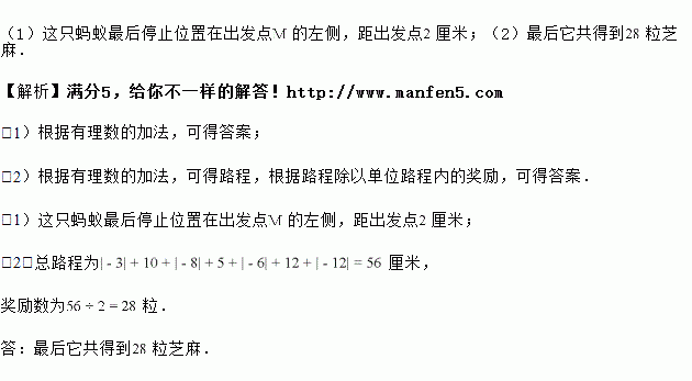 一只蚂蚁从某点出发,在一条直线上来回爬行,把它向右爬行的路程记为正数,向左爬行的路程记为负数,则它爬过的各段路程依次为:![]()