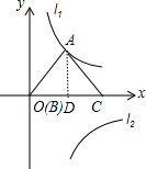 分析 (1)作AD⊥BC于D,如图,根据等腰三角形的性质得BD=CB=$\frac{1}{2}$BC=4,再利用勾股定理计算出AD,从而得到A点坐标为(4,3),然后利用待定系数法求双曲线l1的函数解析式;