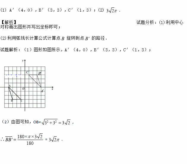 (1)画出关于原点成中心对称的△A′B′C′,并直接写出△A′B′C′各顶点的坐标.