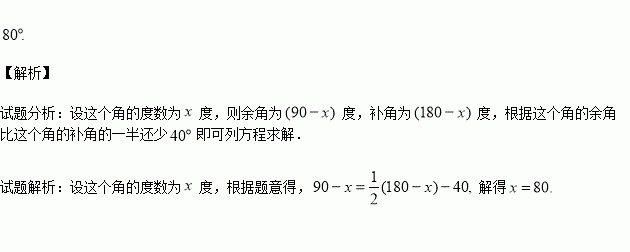 一个角的余角比这个角的补角的一半还少40°,求这个角的度数.