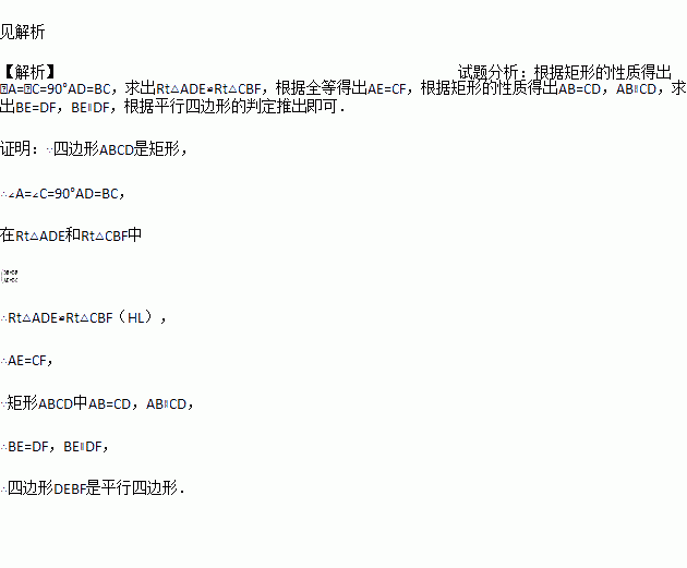 如图,在矩形ABCD中,E、F分别在AB、CD上,且AE=CF.求证:四边形DEBF是平行四边形.