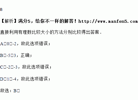 A. 0<﹣2 B. ﹣5<3 C. ﹣2<﹣3 D. 1<﹣4