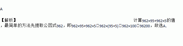 观察下面算962×95+962×5的解题过程,其中最简单的方法是( )