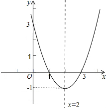 (3)抛物线的对称轴为直线x=2,顶点坐标为(2,-1),与y轴的交点坐标为(0,3),与x轴的交点坐标为(1,0)、(3,0),然后根据这些特征进行画图.