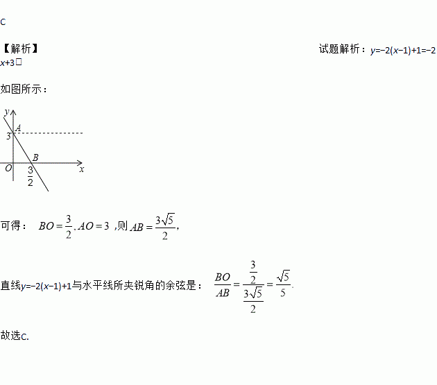 直线y=﹣2(x﹣1)+1与水平线所夹锐角的余弦是( )