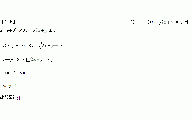 若(x-y+3)2+=0,则x+y的值为________.