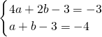 已知二次函数y=ax2+bx-3的图象经过点A(2,-3),B(1,-4).