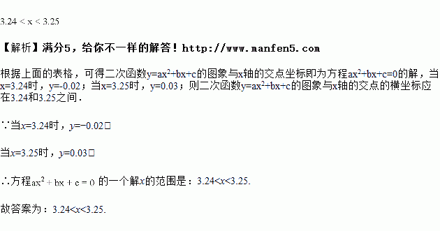 根据下列表格的对应值,判断(,,,为常数)的一个解的取值范围是________