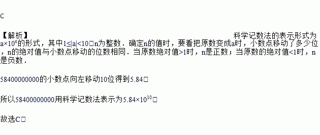 A. 584×108 B. 58.4×109 C. 5.84×1010 D. 5.84×1011