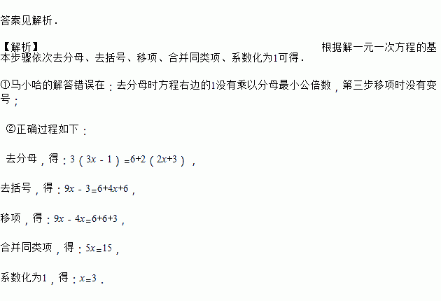 下面是马小哈同学做的一道题,请按照“要求”帮他改正.