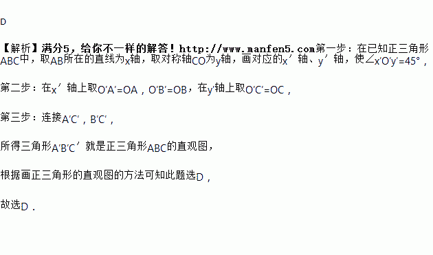画正三角形ABC(如图)水平放置的直观图△A′B′C′,正确的是( )