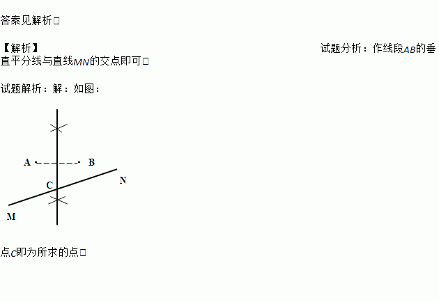如图,在直线MN上找一点C点,使AC=BC.(不写作法,保留作图痕迹)