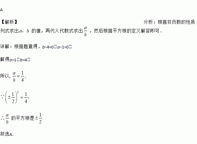 已知∣b-4∣+(a-1)2=0,则的平方根是( )