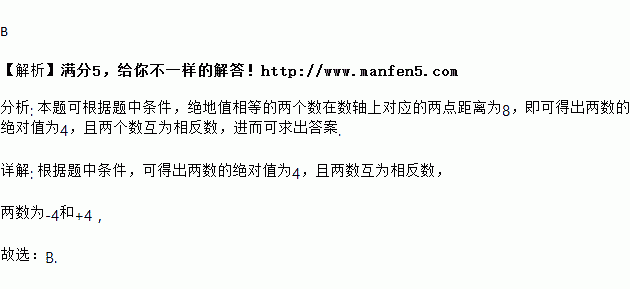 绝对值相等的两个数在数轴上对应的两点距离为8,则这两个数为( )