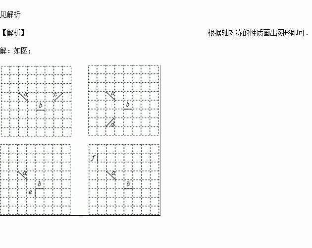 如图是8×8的格点,线段a、b的端点在格点上,请在图中画出第三条线段,使其端点在格点上且与线段a、b组成轴对称图形.(画出所有情况,并在图中把这些线段标记为线段c、d、e、f、g….)