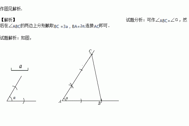 已知线段a和∠α,按要求作图:作一个△ABC,使AB=2a,BC=3a,∠ABC=∠α.(保留作图痕迹,不必写作法和证明)