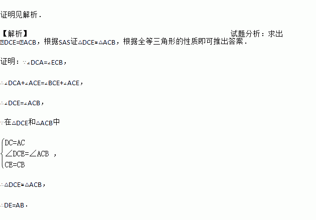 如图,CE=CB,CD=CA,∠DCA=∠ECB,求证:DE=AB.