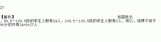 赵老师想了解本校“生活中的数学知识”大赛的成绩分布情况,随机抽取了100份试卷的成绩(满分为120分,成绩为整数),绘制成下图所示的统计图。由图可知,成绩不低于90分的共有 ▲ 人.