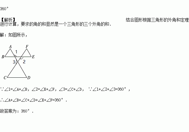 如图,∠A+∠B+∠C+∠D+∠E+∠F=________.