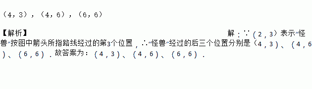 “怪兽吃豆豆”是一种计算机游戏,图中的标志表示“怪兽”先后经过的几个位置.如果用(2,3)表示“怪兽”按图中箭头所指路线经过的第3个位置,请用同样的方式依次写出“怪兽”经过的后三个位置:___________.