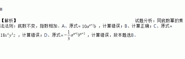 A. (-5an+1b)·(-2a)=-10an+2b B. (-4a2b)·(-a2b2)·(