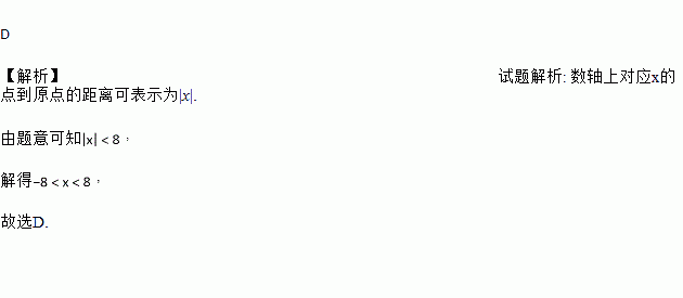 在数轴上与原点的距离小于8的点对应的x满足 ( )