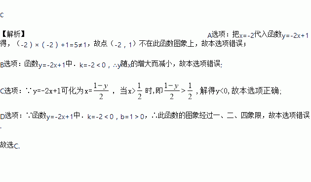关于函数y=-2x+1,下列结论正确的是( )