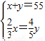 因为两根铁棒之和为55cm,故可列x+y=55,