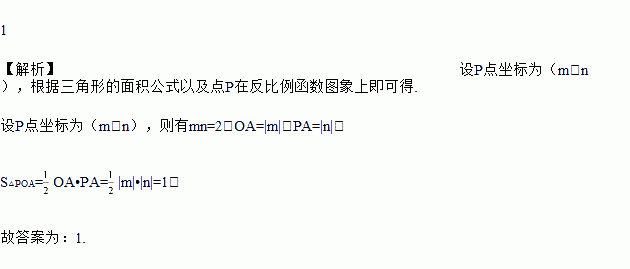 如图,在平面直角坐标系中, 为坐标原点,点是反比例函数图象上的一点, 轴于点,则的面积为___________.