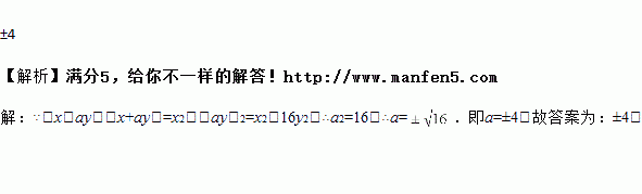 若(x﹣ay)(x+ay)=x2﹣16y2,则a=_____.