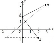 分析:首先作点A关于y轴的对称点C连接CB,CB与y轴交点即为P点,先求出过C,B两点的直线函数关系式,再求出直线与y轴交点坐标即可.