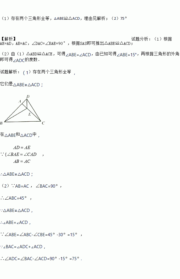 £®EÊÇAC±ßÉϵÄÒ»µã,ÑÓ³¤BAÖÁD,ʹAD=AE£¬Á¬½ÓDE,CD.