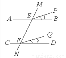 如图,已知AB∥CD,∠1=∠2,试说明EP∥FQ.