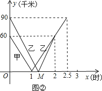 £¨2£©Ö±½Ó¸ù¾ÝÌâÒâÁÐʽ¿ÉÇó£¬ÒÒ³µµÄËÙ¶È150¡Â2=75ǧÃ×/ʱ£¬90¡Â75=1.2£¬ËùÒÔµãM±íʾÒÒ³µ1.2Сʱµ½´ïAµØ£»