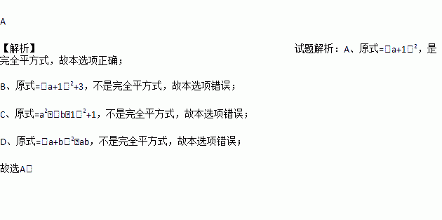 A. a2+2a+1 B. a2+2a+4 C. a2﹣2b+b2 D. a2+ab+b2