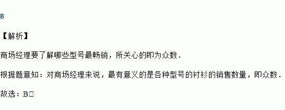 某商场试销一种新款衬衫,一周内销售情况如下表所示:商场经理要了解哪种型号最畅销,则上述数据的统计量中,对商场经理来说最有意义的是![]()