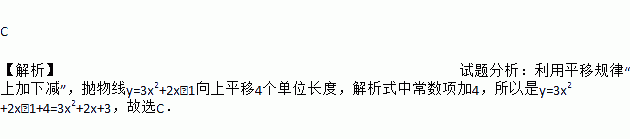 抛物线y=3x2+2x-1向上平移4个单位长度后的函数解析式为( )