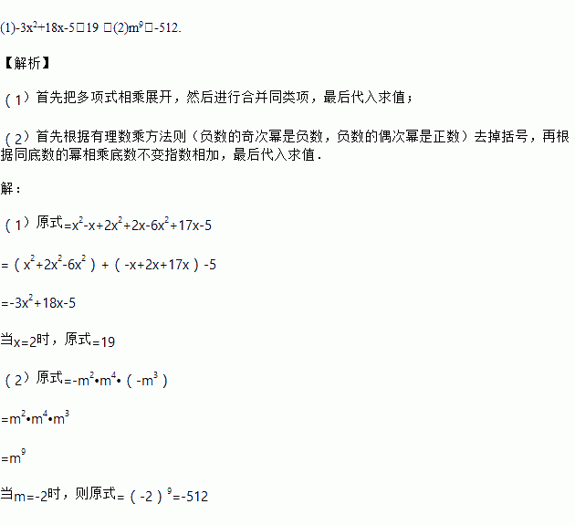 (1)x(x-1)+2x(x+1)-(3x-1)(2x-5),其中x=2.