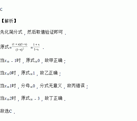 的值”时,有四位同学解答结果如下:甲:当时,原式![]()