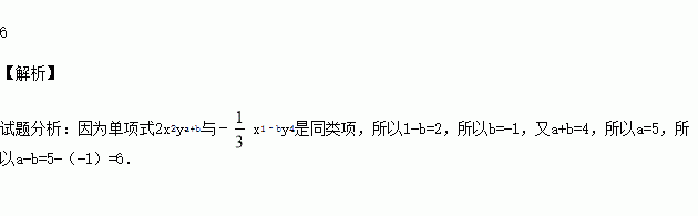 若单项式2x2ya+b与﹣x1﹣by4是同类项,则a-b的值为 .
