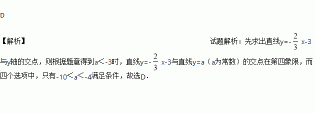 如图,直线l:y=-x-3与直线y=a(a为常数)的交点在第四象限,则a可能在( )